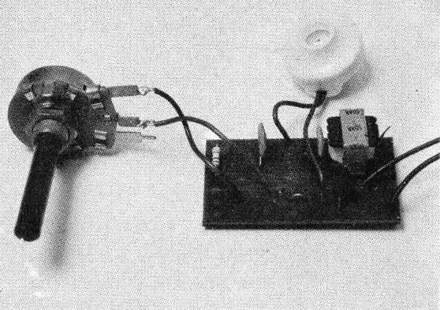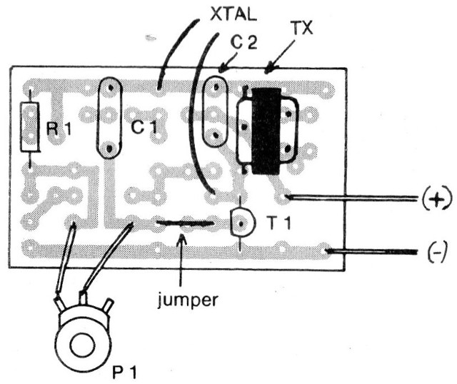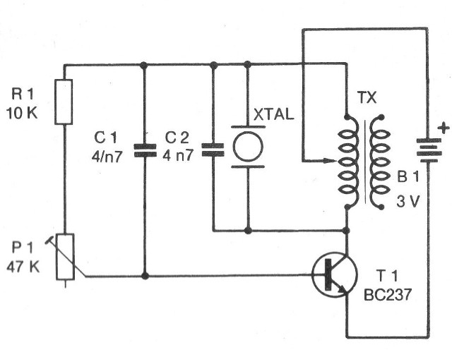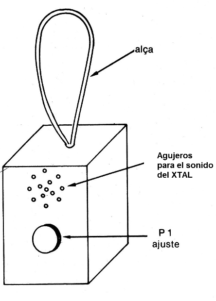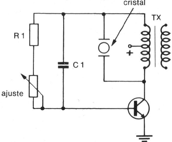 Ajustando el trimpot P1 se debe obtener un silbido continuo en el cristal. La tonalidad de este sonido puede ser modificada por el cambio de C1 o de C2.