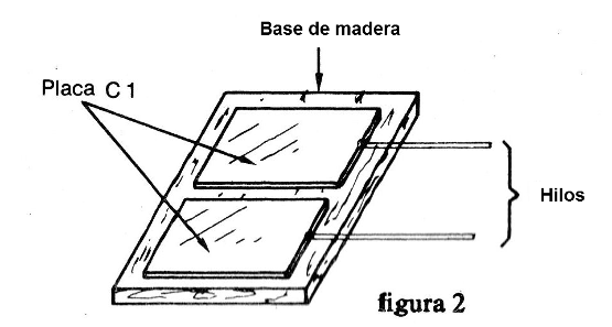 En la figura 2 damos una sugerencia de electrodo que se puede hacer con una placa de circuito impreso. Esta placa será cortada en dos y fijada cada parte en una base de madera en la cual el interrogado apoyará las manos.