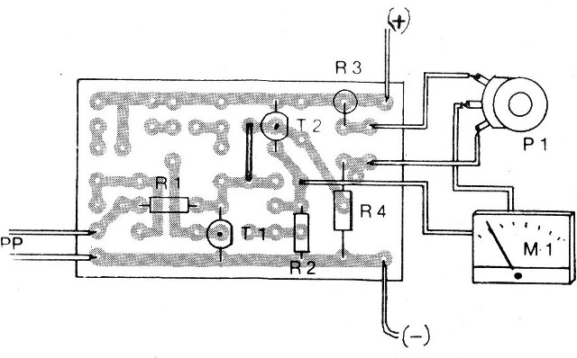 En el colector del segundo transistor será conectado el instrumento que acusan las variaciones de la resistencia. Este instrumento es un VU común de bajo costo ya que lo que interesa en nuestro caso no es la escala sino el movimiento de la aguja.
