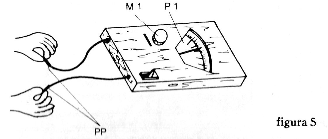 e) El instrumento M1 se fijará en el panel de la caja. Conecte al circuito con dos pedazos de hilo de unos 10 o 15 cm. En este montaje no será necesario observar su polaridad.
