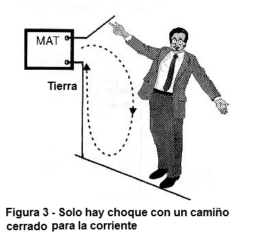 Sin embargo, para tener choque debe haber un circuito cerrado para la circulación de la corriente. Esto significa que el circuito formado por la persona o animal que lleva el choque debe incluir la circulación de la corriente por la tierra como muestra la figura 3.