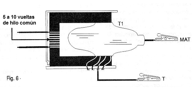 En esta misma figura mostramos dónde conectar el terminal T. Cualquiera de los terminales existentes puede ser experimentado, ya que la diferencia de posición de cada uno hace una diferencia muy pequeña en la tensión generada.