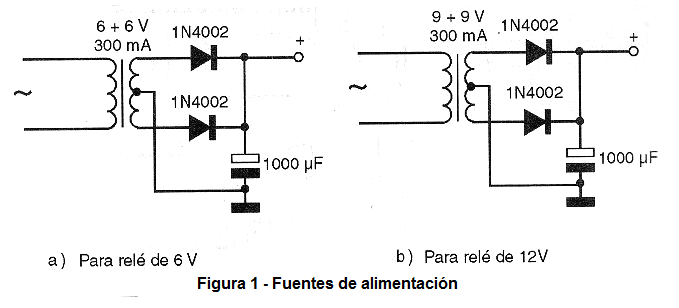 El circuito podrá ser alimentado con tensión de 6 o 12 V según el relé usado. Una fuente simple, sin necesidad de estabilización se puede utilizar para este propósito.