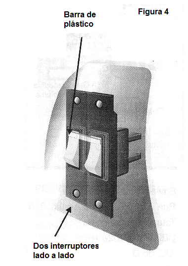 El interruptor del timbre de entrada se debe adaptar o utilizar un interruptor doble (que no es fácil de encontrar). Una solución alternativa consiste en montar lado a lado dos interruptores de timbre comunes y pegar entre ellos una barra de plástico de modo que al ser presionado el otro también sea, como muestra la figura 4.