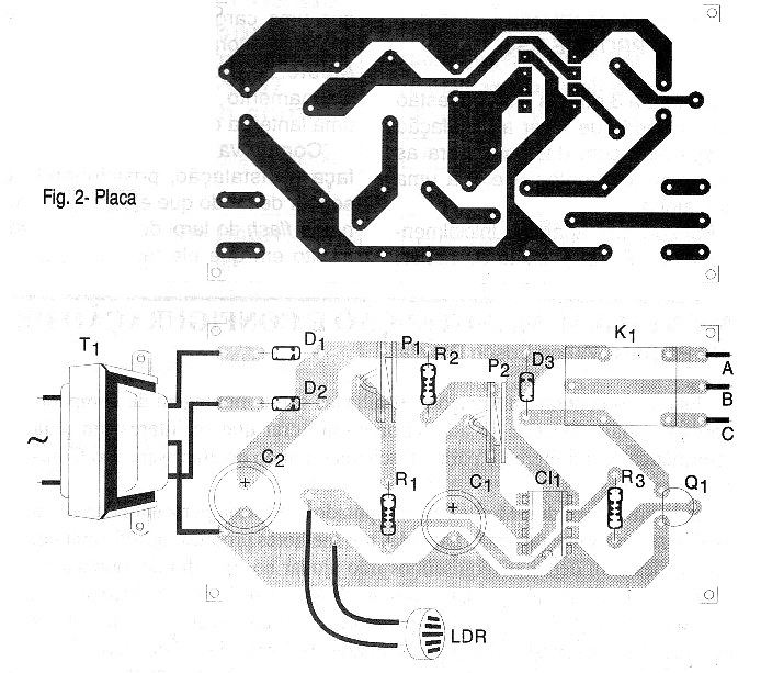 Conecte una carga al relé para poder monitorear su funcionamiento. Ajuste entonces P1 para obtener el accionamiento del relé por el flash de una linterna común.