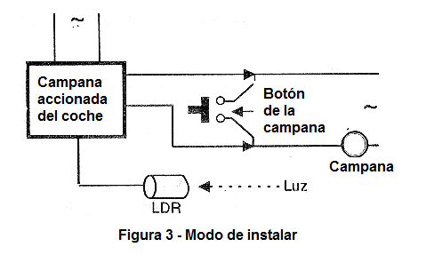 En la figura 3 damos una sugerencia sobre el modo de hacer la instalación del aparato con destaque para las conexiones de los puntos A y B a un timbre.