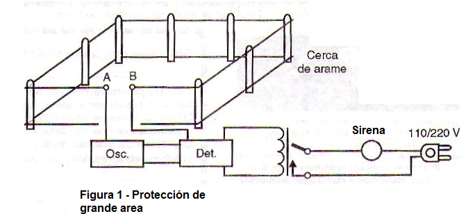 * Protección de cercas de granjas donde el alambre puede ser utilizado como sensor. Si hay una interrupción, como se muestra en la figura 1, la alarma se dispara.