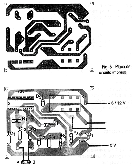 Retirando el hilo conectado entre los puntos A y B el relé debe cerrar sus contactos lo que puede ser percibido por un chasquido. Para mayor facilidad de prueba el lector puede conectar algún tipo de carga para ser controlada por los contactos del relé.