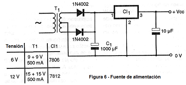 Si se utiliza el circuito con fuente de alimentación, en la figura 6 tenemos una sugerencia para ello.