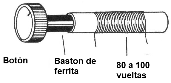 El punto más crítico del montaje es la bobina que se enrolla en un tubo de cartón de modo que el bastón de ferrita pueda ser desplazado sin mucha holgura en su interior.
