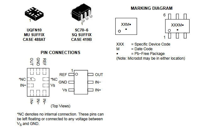 Estos sensores se pueden utilizar con tensiones de entrada en modo común de 0,3 a 26 V y se suministran en envoltorio SC70-6 y UQFN10, como se muestra en la figura 1.
