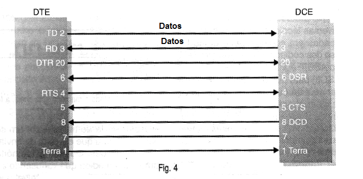 En la figura 4 tenemos la conexión lógica de las señales RS-232-C que se utiliza más comúnmente en la práctica.