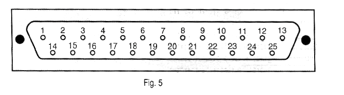 La conexión mecánica se realiza mediante un conector DB - 25 cuya parte hembra se muestra en la figura 5 con la identificación de los pinos. Nota el sentido del contaje, aunque en la mayoría de los tipos el número de cada pino está registrado en el propio zócalo.