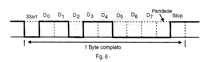 Así, como se muestra en la figura 6, la señal está formada por bits individuales que son enviados uno por uno en un "paquete" de tamaño definido en el formato ASCII.