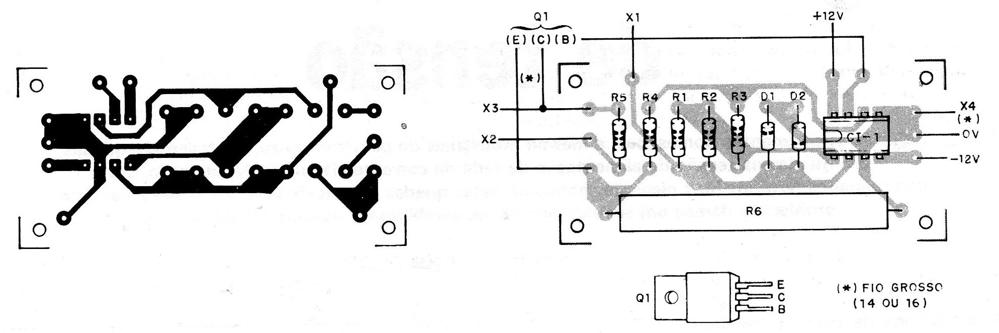 Observe que las conexiones que conducen las corrientes más intensas deben ser hechas con hilos gruesos o bien tener regiones cubiertas amplias en la placa de circuito impreso.