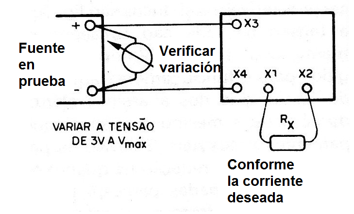 Una sugerencia consiste en la utilización de un potenciómetro lineal entre X1 y X2 que permitiría el ajuste de la corriente en la carga en una amplia gama de valores.