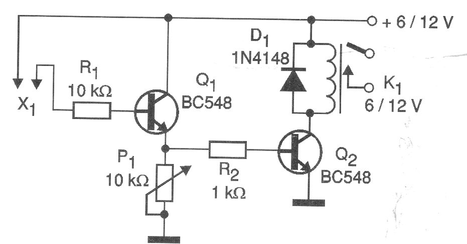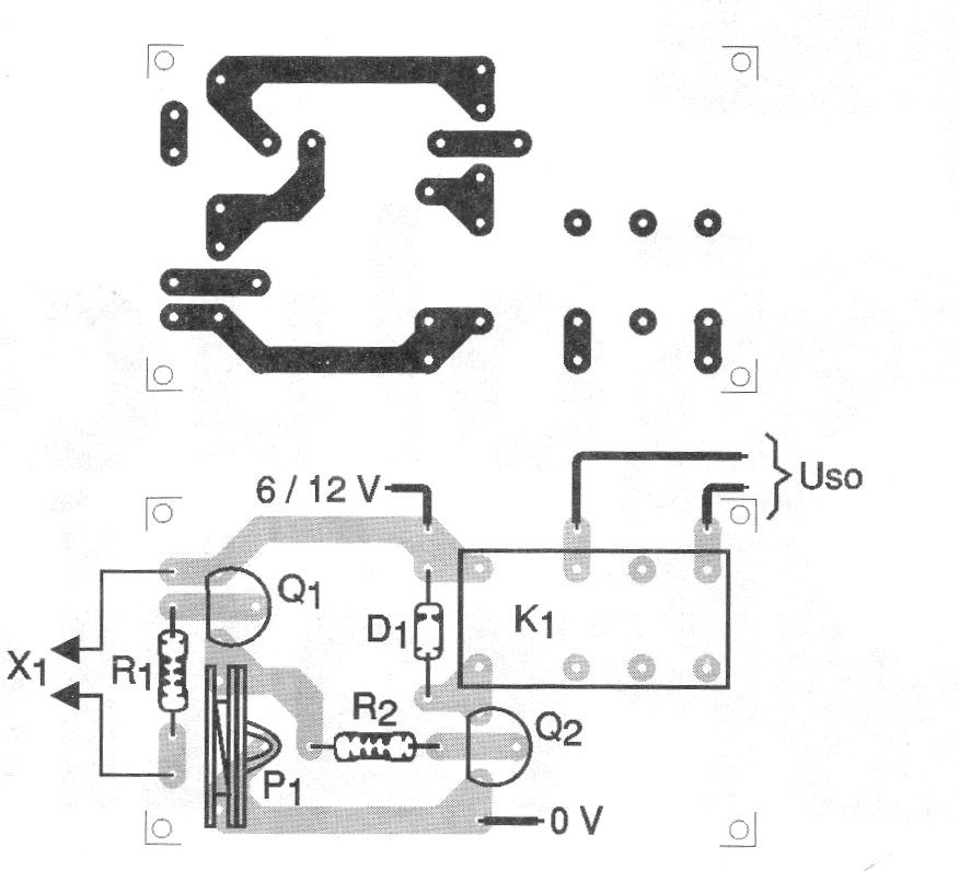 K1 - Relé de 6 o 12 V sensible (hasta 100 mA - contactos según el circuito controlado)