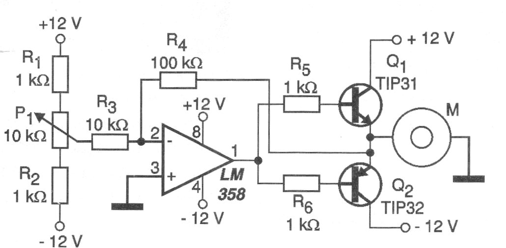 Los amplificadores operacionales equivalentes al LM358 pueden ser empleados y la ganancia del circuito que va a determinar su respuesta puede ser cambiada en R4, dependiendo de las características del motor utilizado.