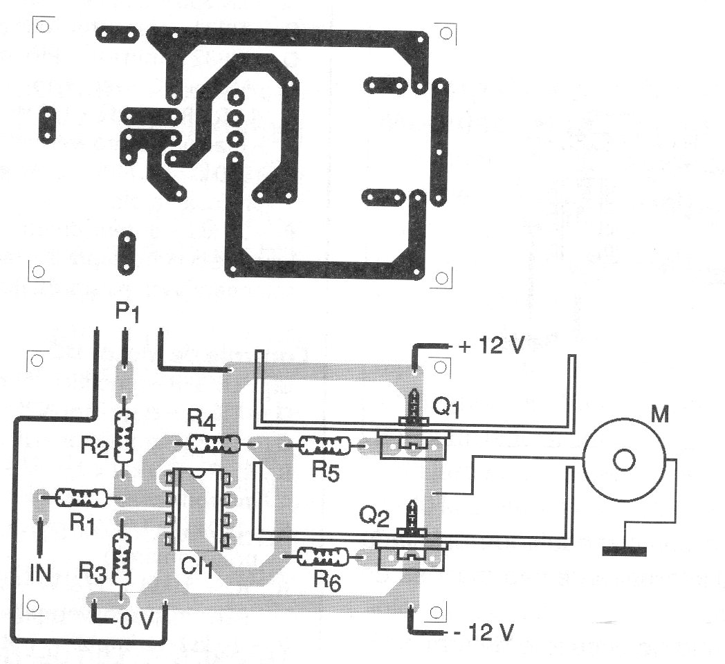 Los dos transistores deben montarse en radiadores de calor compatibles con la potencia del motor.