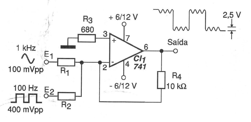 El circuito mostrado en la figura 8 combina señales de dos frecuencias pudiendo ser empleado en instrumentación como modulador o aún para multiplexación de informaciones de sensores.
