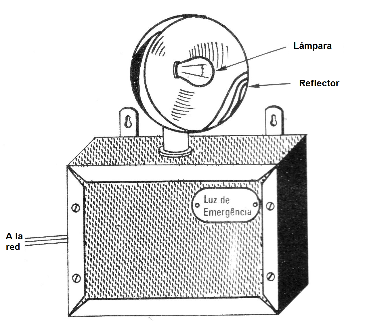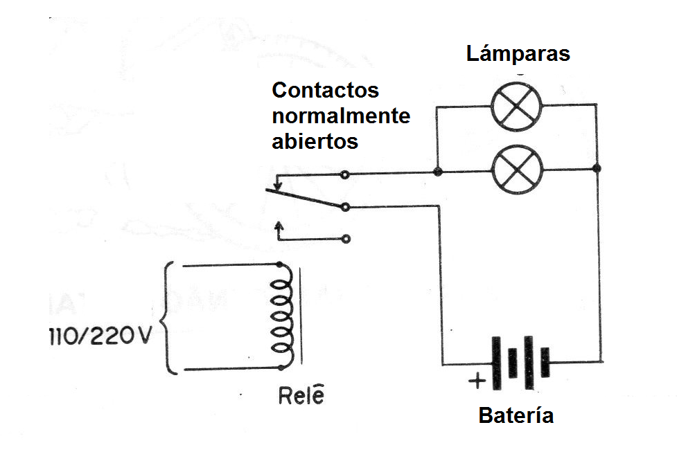 Un medio bastante simple, pero no muy apropiado de obtener un sistema de iluminación de emergencia consiste en mantener constantemente un relé accionado por la red de alimentación, de modo que, en el momento en que ocurra la interrupción de corriente, sus contactos se cierren y con ello se activa la luz de emergencia.