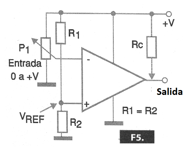 Otra forma de utilizar el amplificador operacional es la mostrada en la figura 5, donde aplicamos la tensión de referencia en la entrada inversora (-).