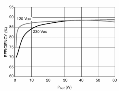 Otros destaques de este circuito son su bajo consumo sin carga que es menor que 100 mW en 230 V, su eficiencia excelente con cargas ligeras y su protección contra cortocircuito que está activada con menos de 100 W para cualquier tensión de entrada.