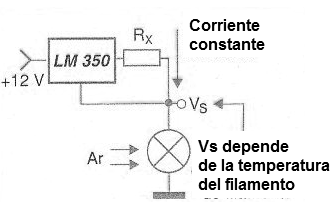Cuando la resistencia del filamento aumenta en función del aumento de su temperatura, para mantener la corriente, la fuente aumenta la tensión aplicada en la lámpara.