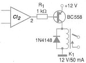 En el diseño original estamos utilizando un indicador LED para indicar una elevación de la temperatura. Sin embargo, podemos hacer el accionamiento de un relé, como muestra el circuito adicional de la figura 7.