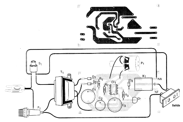 El diseño de esta placa se realiza para un relé del tipo DIL, pero si el lector utiliza otro tipo, lo que es perfectamente posible, deberá verificar si la disposición de los terminales necesita ser alterada.