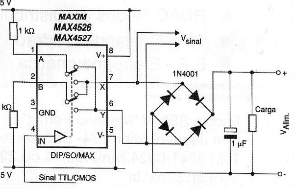 En la figura 1 tenemos una idea práctica de Maxim que se basa en el circuito integrado MAX4526 o MAX4527.