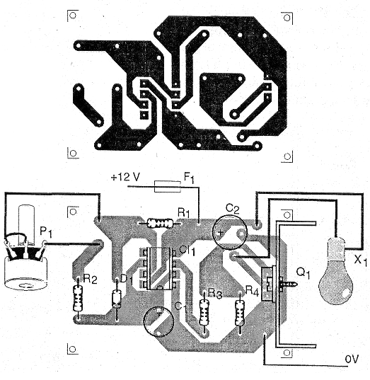 Un fusible en la entrada del circuito protege el circuito y la instalación eléctrica del vehículo si se utiliza de esta forma. C2 funciona como un depósito de energía que ayuda a suplir la corriente elevada requerida por la lámpara en el momento en que se enciende.