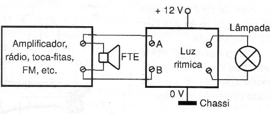 El circuito que presentamos produce un efecto visual muy interesante en el coche o desde equipos de sonido domésticos: hace que una o más lámparas parpadeen al ritmo de la música reproducida. ver que lo que difiere este circuito de los convencionales de panel es que en lugar de LEDs débiles funciona con lámparas, incluso las del propio interior del coche (cortesía) si el lector lo desea.