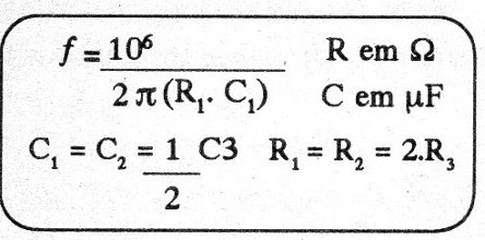 Los valores de la doble T deben elegirse de acuerdo con la frecuencia a ser bloqueada. Tenemos entonces las siguientes fórmulas a considerar:
