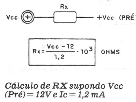 En la figura 3 mostramos cómo calcular el valor de Rx para alimentar a partir de Vcc (tensión del amplificador) el preamplificador con 12 voltios.