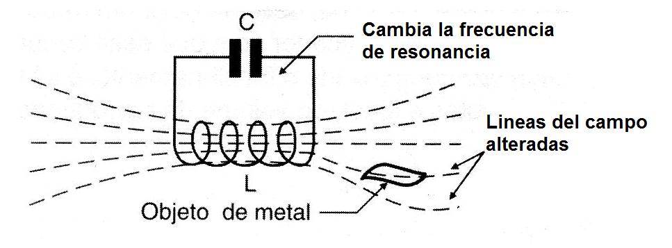 En presencia de un metal la inductancia de la bobina se altera y con ello la frecuencia del oscilador. El resultado es que la señal que estaba siendo sintonizada por el receptor "escapa", cambiando levemente la sintonía o aún desapareciendo, como muestra la figura 1.