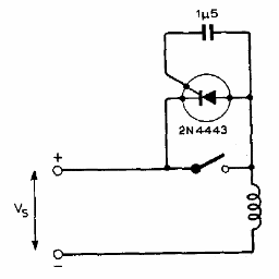 El circuito mostrado en la figura suprime arcos en contactos cuando se conmutan cargas inductivas. El SCR puede ser equivalente más moderno como de la serie TIC, siempre que soporta las altas instantáneas. El circuito es de una documentación de los años 70.