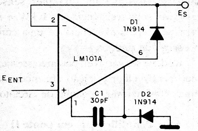 Tanto el amplificador operacional como los diodos admiten equivalentes en este circuito sugerido por National Semiconductor. La fuente debe ser simétrica y la curva del circuito se asemeja a un diodo ideal.
