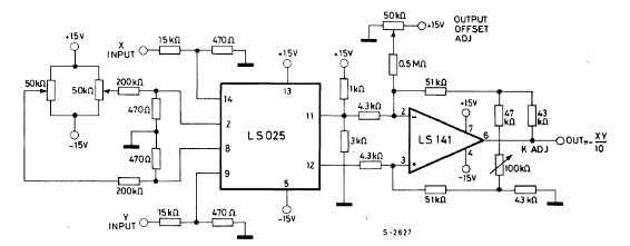 Este circuito se obtuvo en el manual de circuitos integrados lineales de la SGS de 1982. Los componentes usados no son comunes actualmente, pero LS141 es equivalente al 741. El circuito requiere una fuente simétrica.