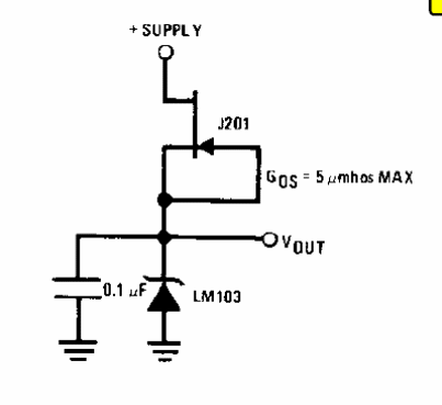 Encontramos este circuito en el FET Databook de National Semiconductor. La configuración se puede implementar con otros FET y la tensión de referencia es dada por el LM103.