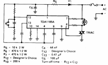 Encontramos este circuito, que sólo debe usarse con lámparas incandescentes. En el Linear Databook de la Motorola de1990. El circuito puede utilizar cualquier triac de la serie TIC.