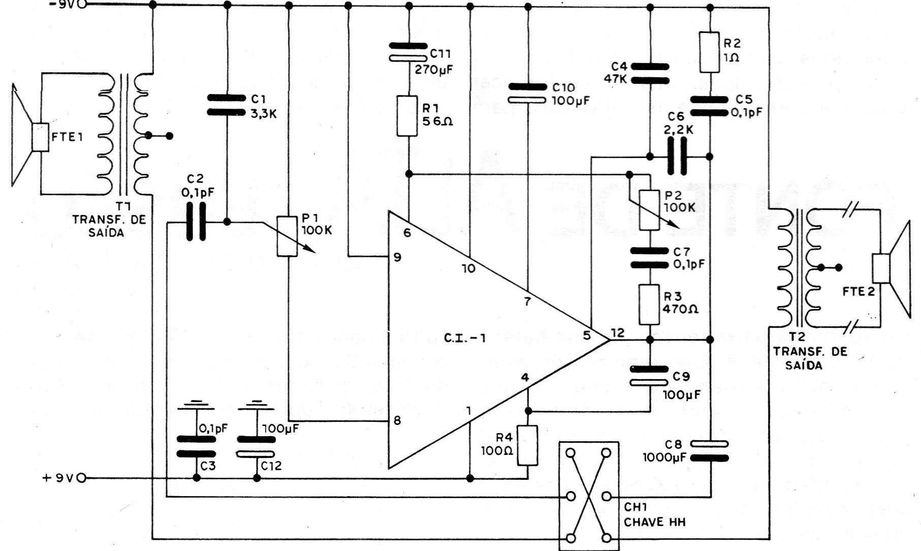 Encontramos este circuito en una documentación de 1982. Un intercomunicador para ser bueno debe ser sensible y tener buena potencia de salida. A partir de esta idea, el intercomunicador que damos utiliza el circuito integrado TBA810 AS, que puede suministrar hasta 7 W y que presenta excelente sensibilidad de entrada. El intercomunicador puede ser alimentado con tensiones entre 4 y 20 V, siendo que a partir de 9 V será necesario usar un buen disipador de calor para el circuito integrado. Este disipador consiste en una placa de aluminio fino de 2/10 cm doblada en "U" y sujeta al integrado firmemente. La potencia de audio obtenida dependerá de la tensión de alimentación. Para la estación remota se puede usar cable común hasta distancias, de 50 Para distancias mayores se recomienda el uso de cable blindado, para que no ocurra la captación de zumbidos.