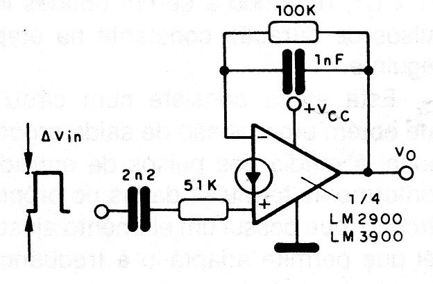 El circuito mostrado en la figura tiene un tiempo de ascenso para la tensión de salida de 0,22 ms y una constante de tiempo de entrada de aproximadamente 1ms.