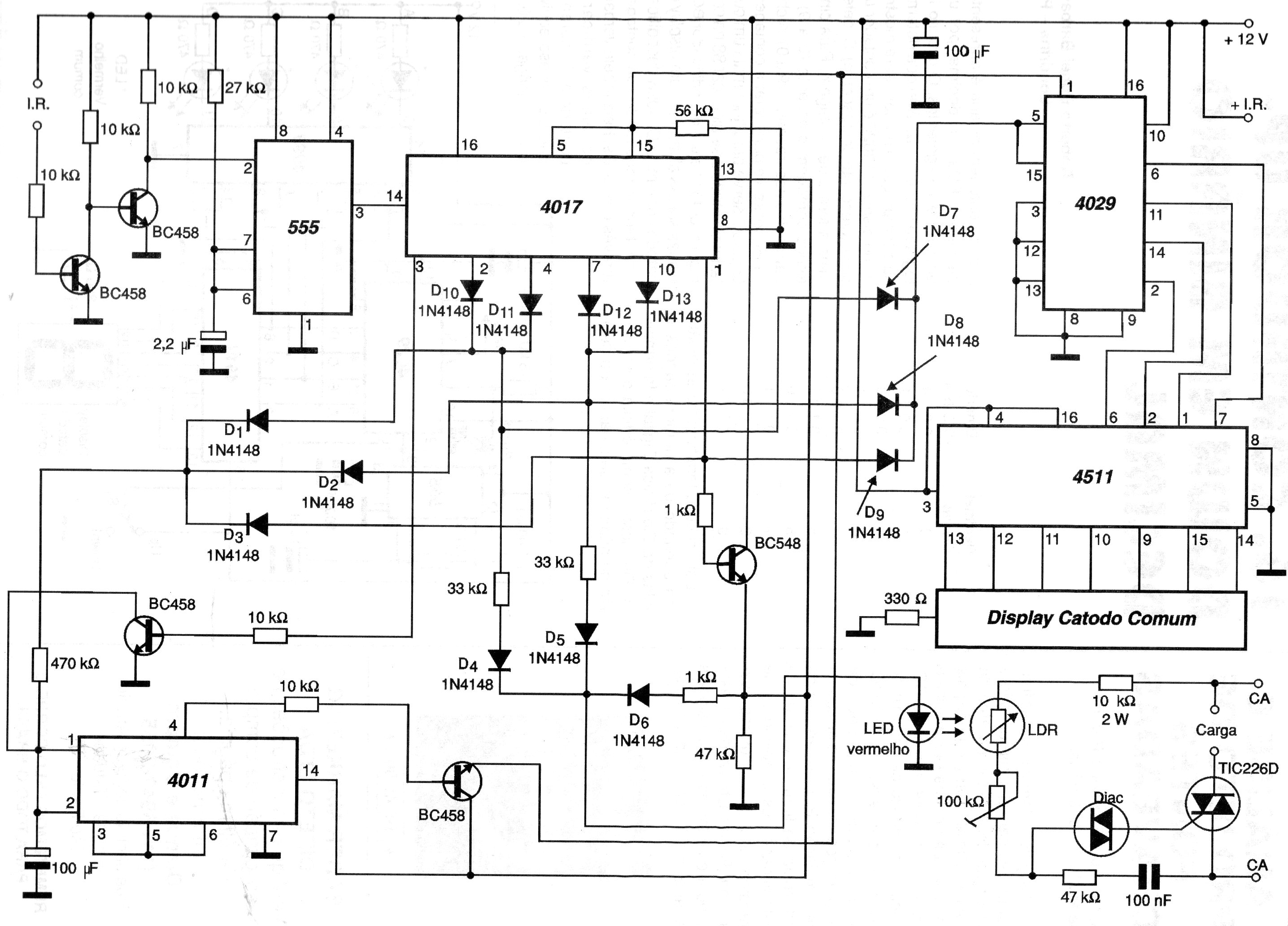 Este circuito controla automáticamente el grado de iluminación. Como el circuito es de 2001, sólo se aplica a las bombillas incandescentes, pero ciertamente el lector encontrará aplicaciones interesantes para él. El circuito se basa en tecnología CMOS debiendo ser alimentado por una tensión de 12 V.