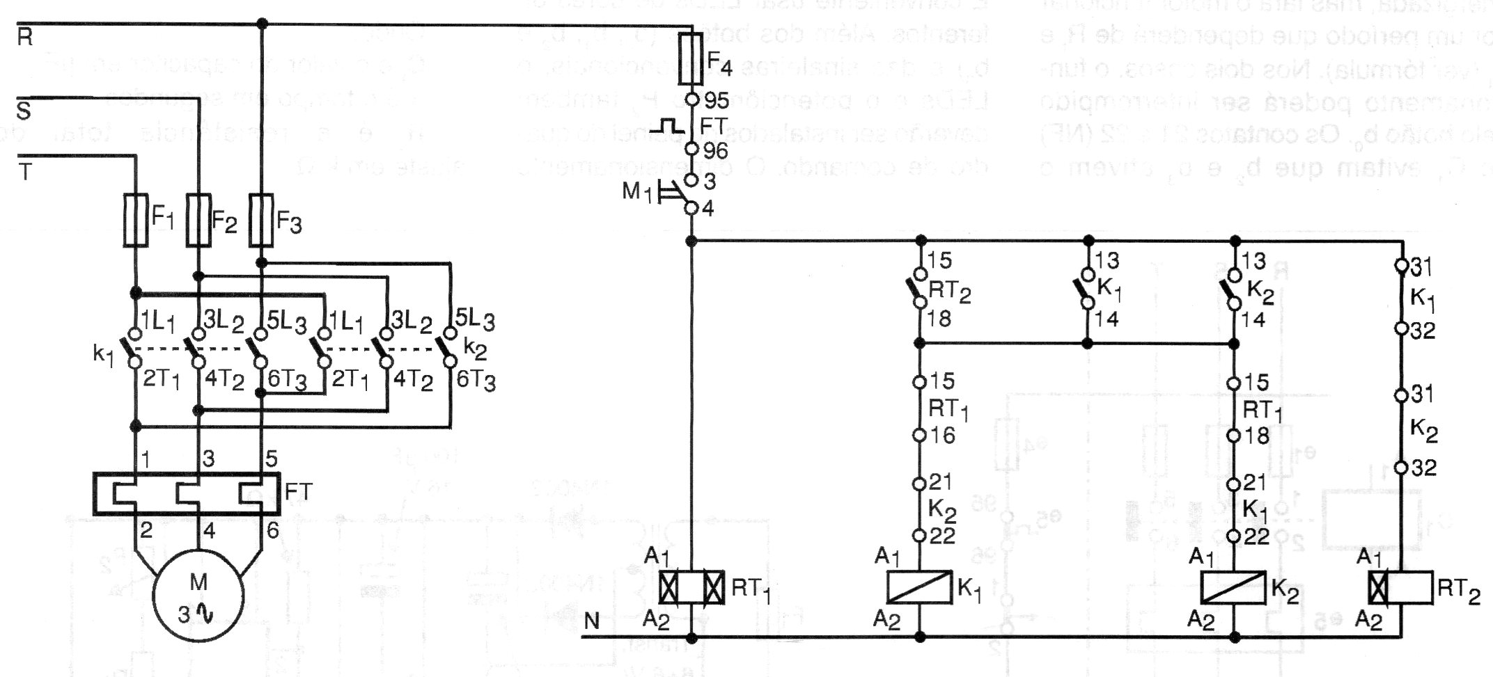 Este circuito utiliza contactores y temporizadores para revertir un motor trifásico. El circuito se encontró en una documentación de 2000. TCS es un temporizador cíclico y TET un temporizador.