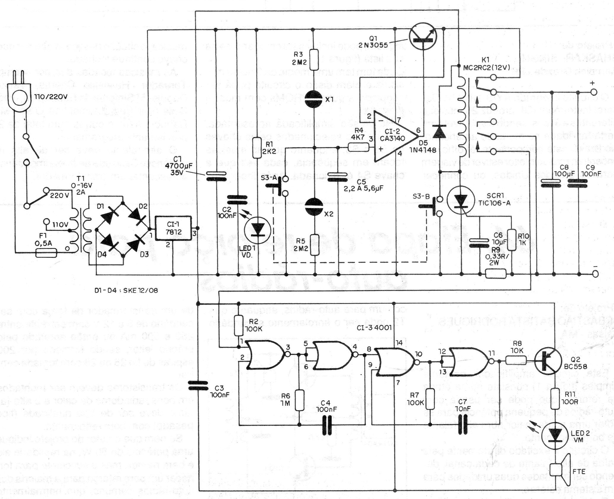 Esta fuente con control por toque se encontró en una documentación de 1990. La fuente proporciona de 0 a 20 V con corriente de 2 A, pero el circuito de control se puede utilizar con otras fuentes, algunas de las cuales ya están disponibles en este sitio. El transistor de potencia debe estar dotado de disipador de calor y el capacitor C5 debe ser preferiblemente de poliéster debido a fugas.