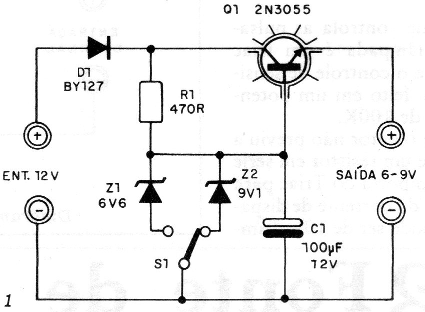 Este circuito tiene una configuración tradicional que se encuentra a menudo en este sitio. El transistor debe estar dotado de disipador de calor y la corriente máxima de salida es del orden de 3 A. La tensión es seleccionada por los diodos zener.