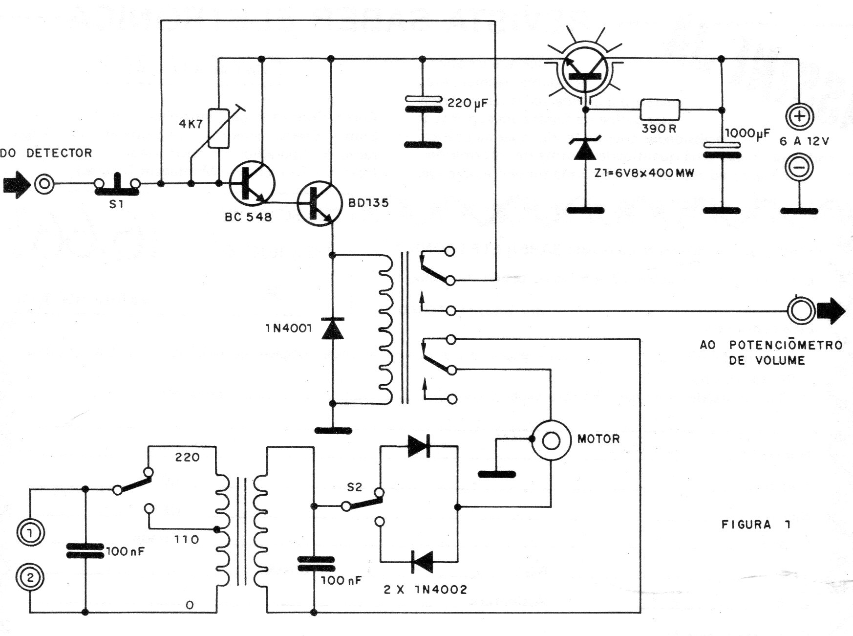 Este circuito es de una documentación de 1986, siendo adaptable en radios de aquella época. El circuito utiliza la señal sintonizada para accionar un relé de modo que se detenga en la próxima estación encontrada. El relé actúa sobre un motor que debe ser acoplado al mecanismo de sintonía.