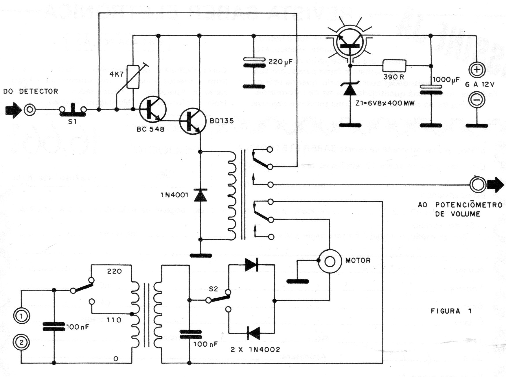 Este circuito fue encontrado en una documentación de 1986. El circuito tiene una configuración común con el 4017 y utiliza transistores para excitar los LED. La tabla junto al diagrama da el comportamiento del circuito. La alimentación debe realizarse con tensiones de 5 a 12 V. Los transistores usados pueden controlar hasta 100 mA de carga.