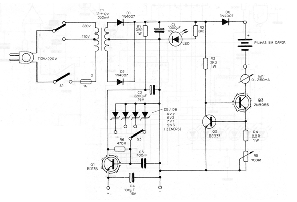 Este circuito doble fue encontrado en una documentación de 1989. Reúne en un solo proyecto una fuente de 6 a 12 V con 500 mA y un cargador de corriente constante para pilas de Nicad. El circuito utiliza componentes comunes en nuestros días.